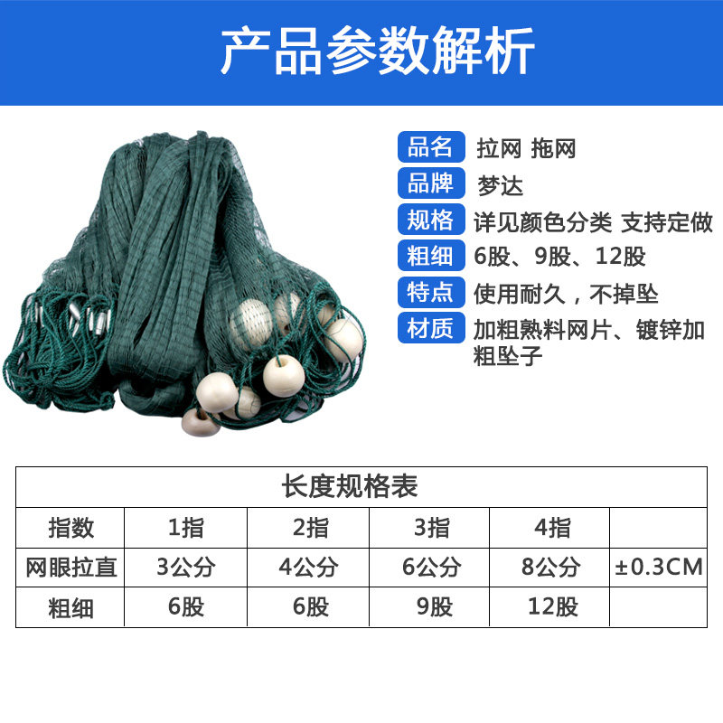 天猫拉网拖网清塘捕鱼渔网拉鱼网鱼塘围网池塘小型隔网家用刮网鱼渔网