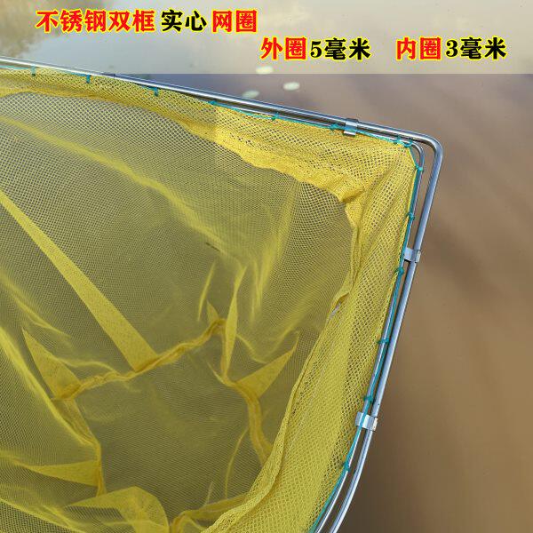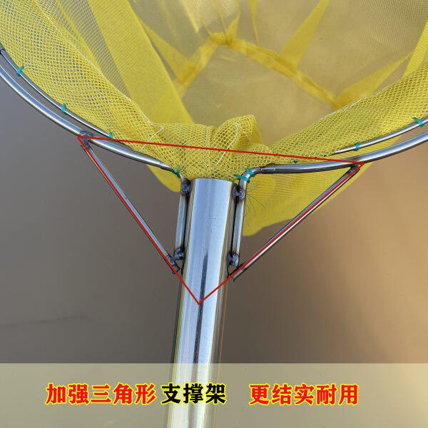 双圈内圈不锈钢抄网九股线网袋小眼鱼捞抄网长柄渔具网兜