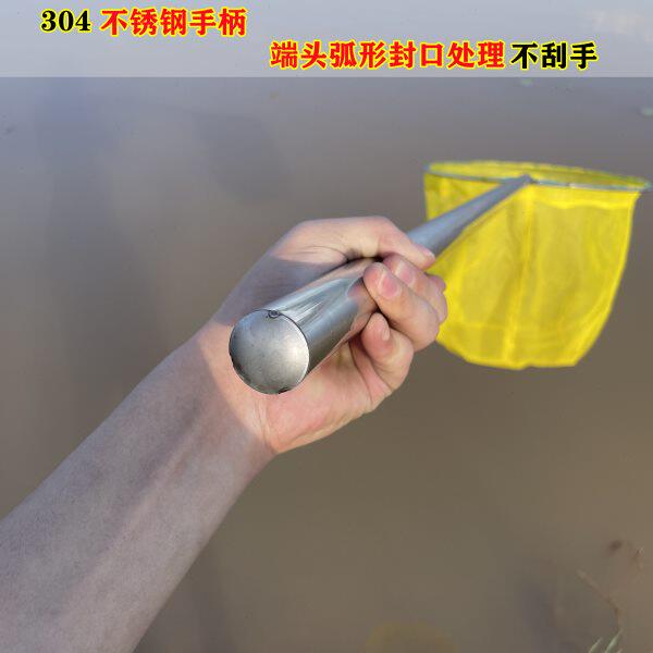 淘双圈内圈不锈钢抄网九股线网袋小眼鱼捞抄网长柄渔具网兜