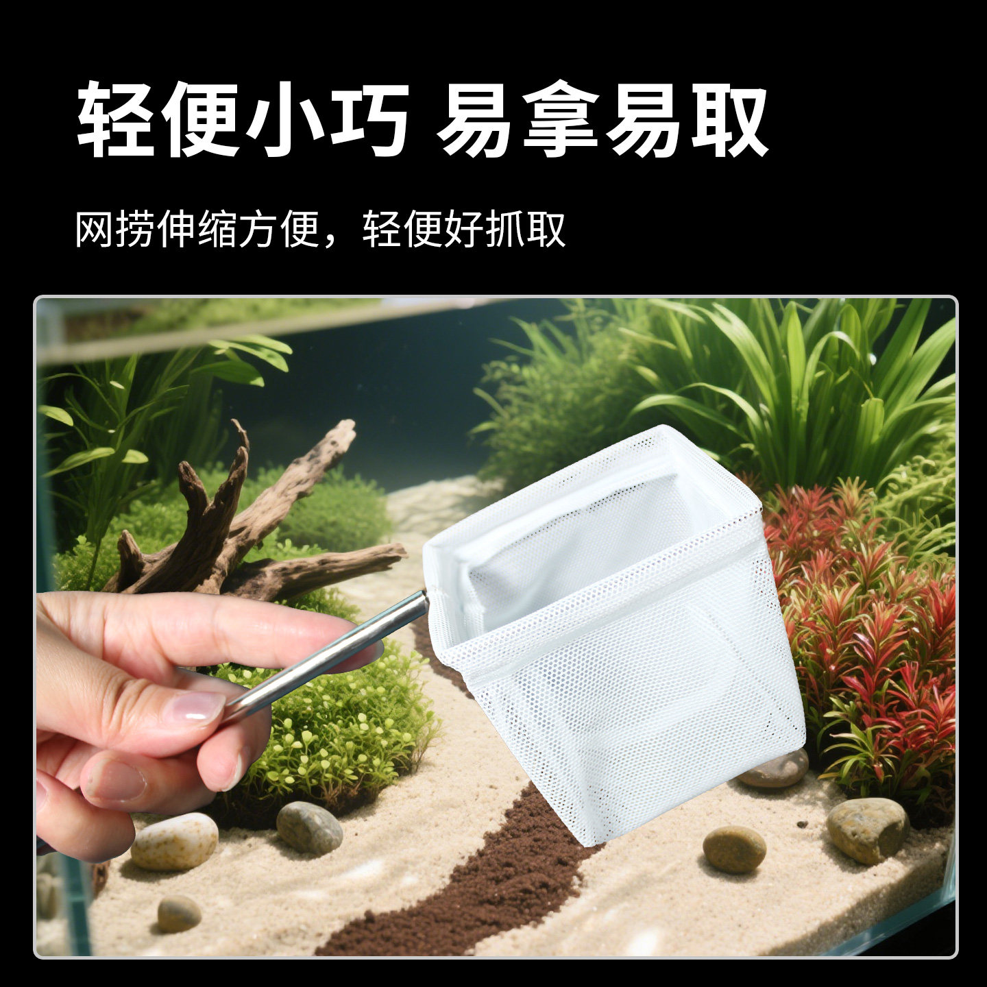 鱼网鱼捞3D不锈钢可伸缩圆方形渔捞虾捞小鱼捞抄网,专为水族爱好者设计,适用于鱼缸、水族箱及池塘。采用优质3D立体不锈钢网框,坚固耐用且防腐防锈,网面细腻柔软,有效保护水晶虾、小鱼等脆弱生物。可伸缩手柄设计,长度自由调节,操作灵活省力,轻松捞取角落杂物或活体生物。圆头与方头可选,满足不同场景需求。网眼密度适中,排水快、阻力小,提升捕捞效率。整体轻便易收纳,是家庭养鱼、观赏虾养殖的理想工具,兼顾实用性与美观性,让水族管理更轻松便捷。