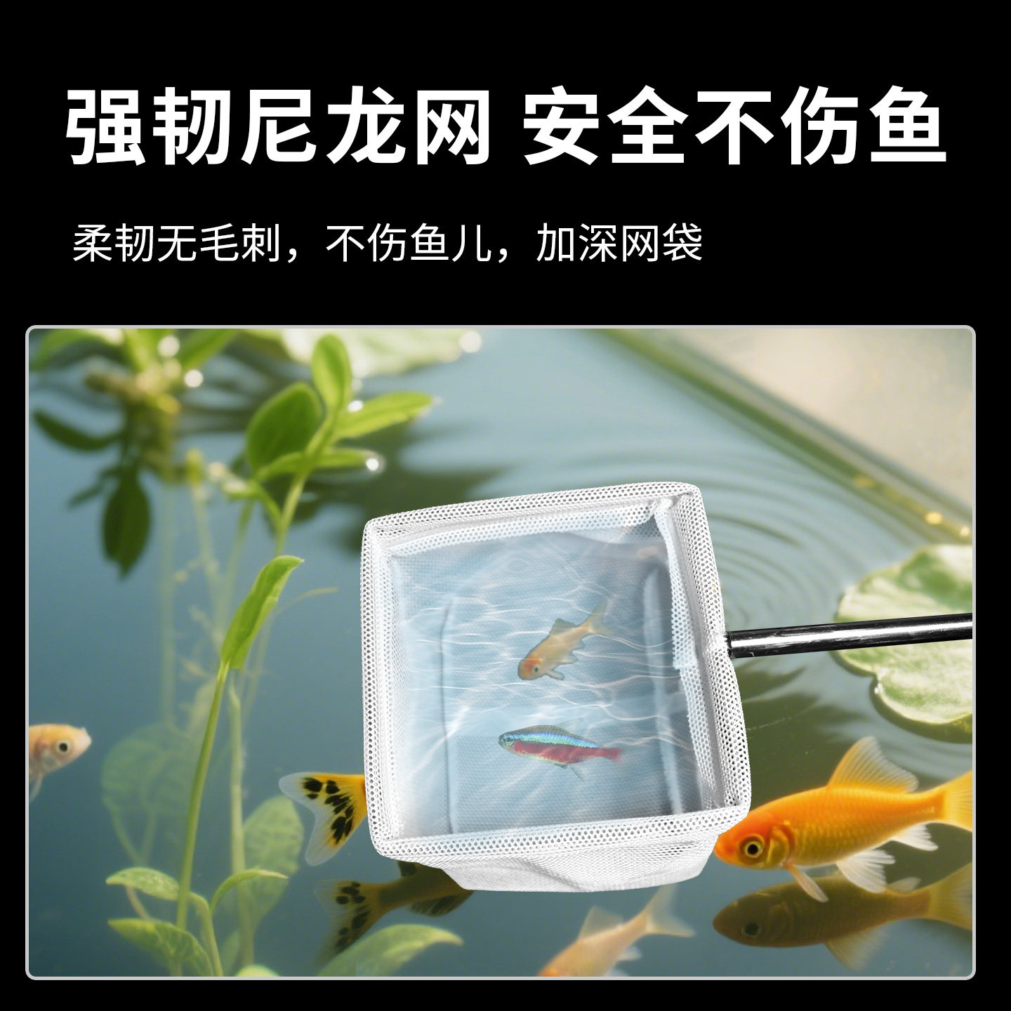 淘yee鱼缸捞鱼网鱼捞渔捞水族箱抄网兜方形鱼捞手抄鱼网金鱼观赏鱼
