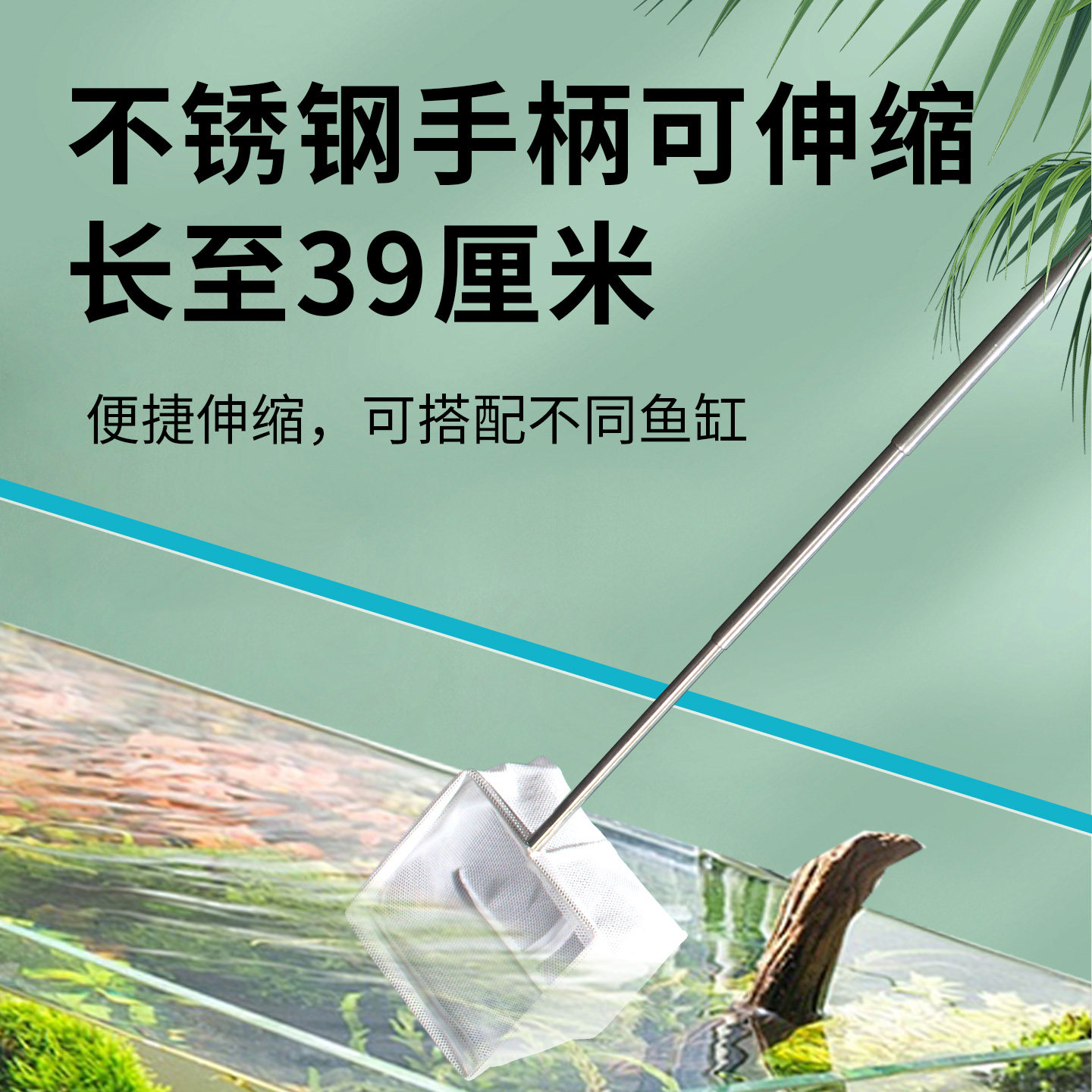 鱼缸鱼捞网不锈钢可伸缩渔网大号方型捕鱼网手抄网热带鱼家用鱼捞