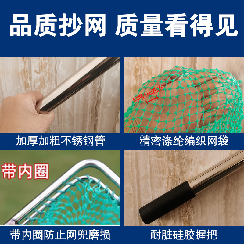 加厚六角不锈钢抄网超结实抄鱼渔具棉线细眼网兜大号鱼捞一体大物