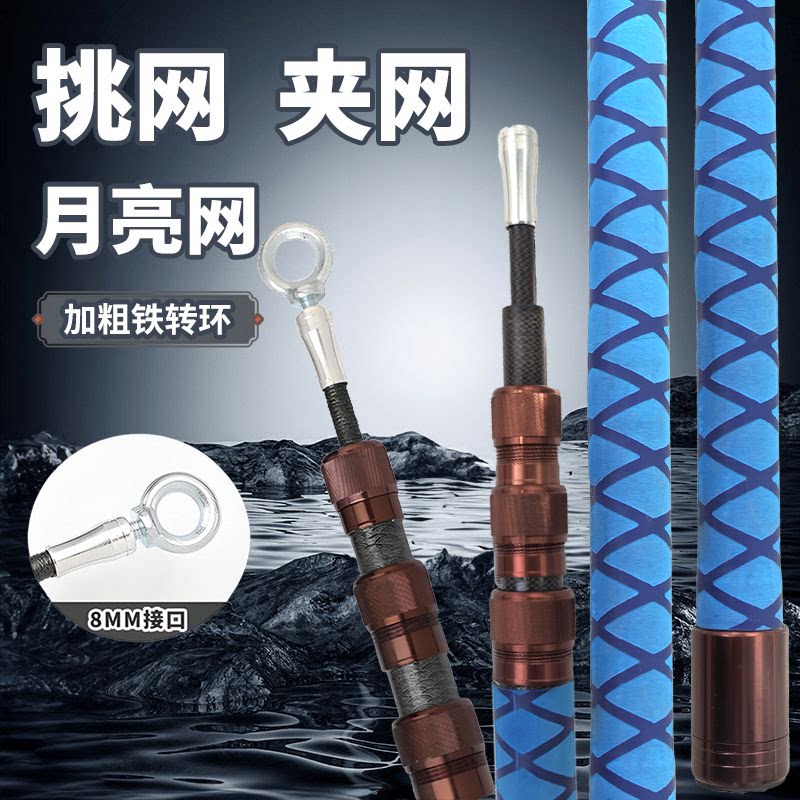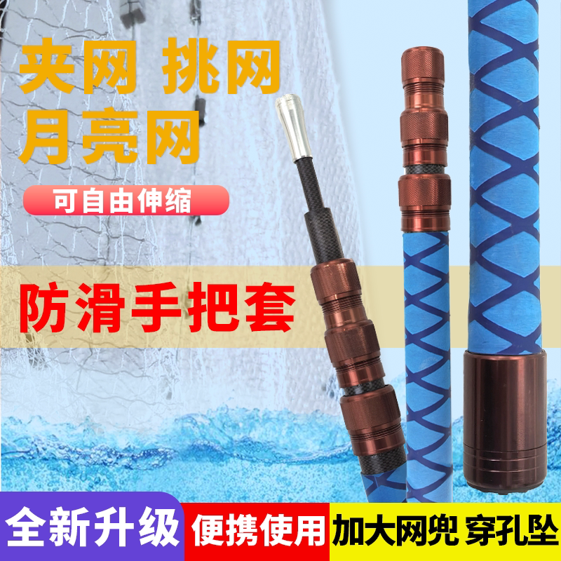 淘宝户外夹网高碳素伸缩杆双杆统捕鱼网旗杆舞龙专用杆月亮网龙网渔网