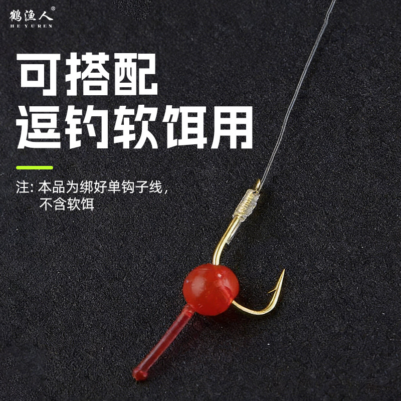 淘宝鹤渔人路亚逗钓子线单钩冬季逗钓鲫鱼大板鲫绑好成品钓鱼配件鱼钩