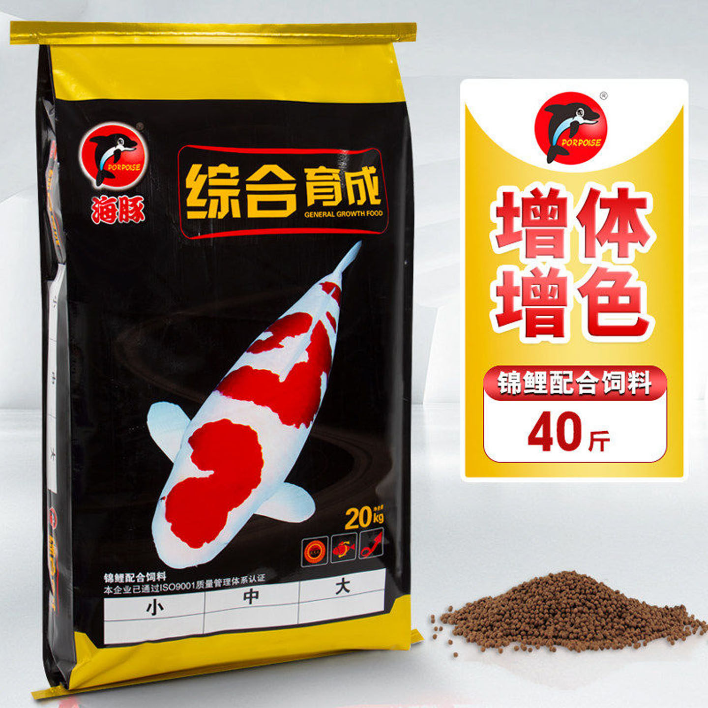 淘宝海豚锦鲤鱼饲料金鱼专用养殖鱼食不浑水颗粒型增肥增色渔场粮饲料