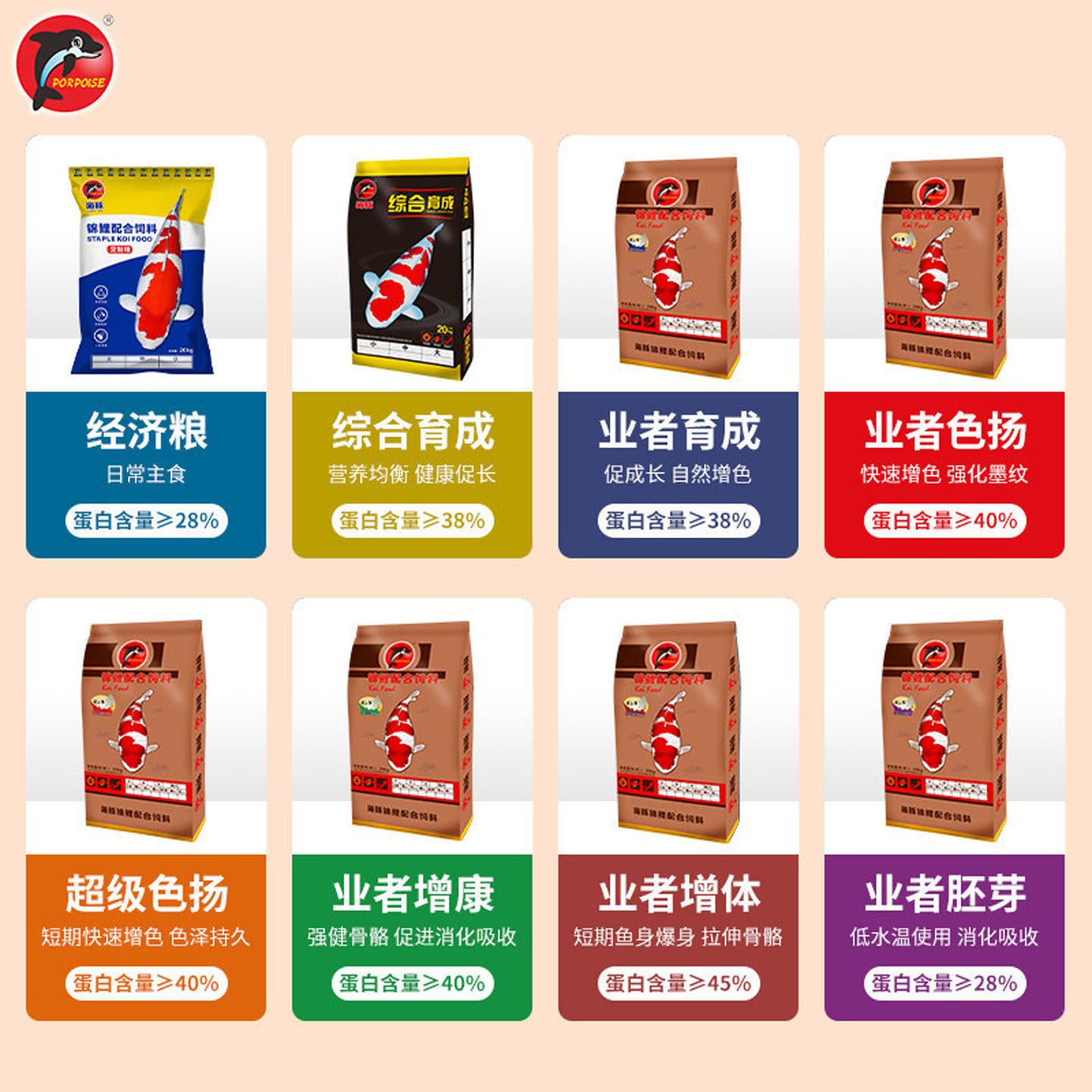 锦鲤专用鱼食鱼粮增色增体金鱼饲料不浑水家用池塘渔场20kg10公斤