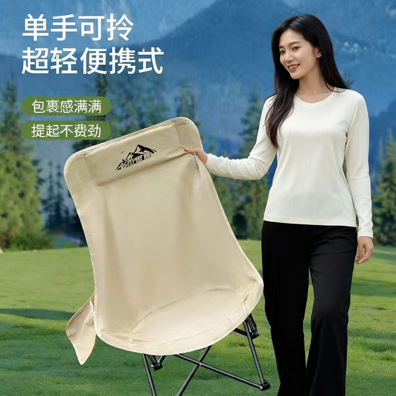户外折叠椅便携式高靠背椅子可调节钓鱼野餐凳月亮椅露营躺椅