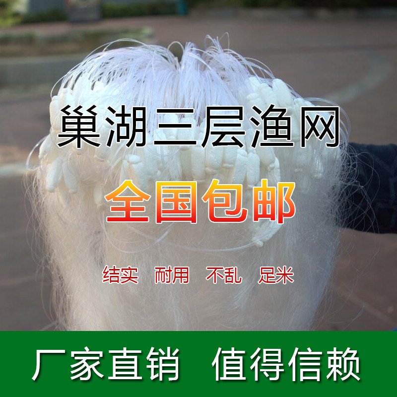 淘三层鱼网进口白丝粘网沉网鲢鱼鲫鱼网4米5米6米8米10米水库捕渔具