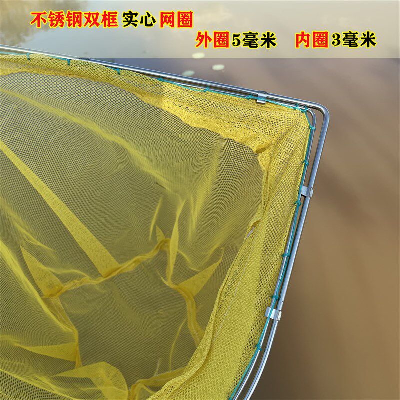 淘双圈内圈不锈钢抄网手工编织九股线密眼鱼捞木把抄网长柄渔具网兜