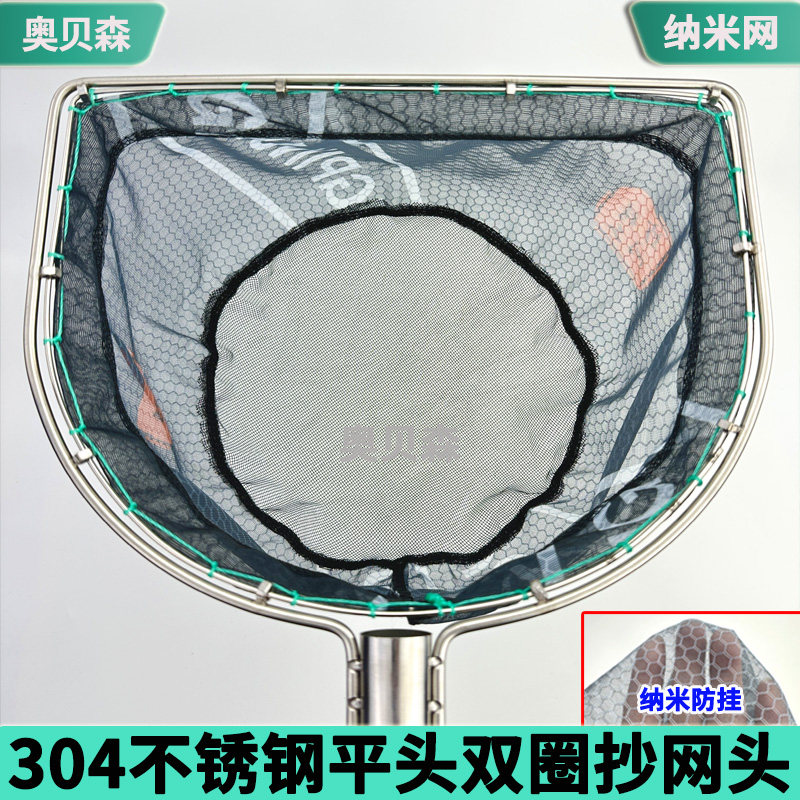 淘宝不锈钢304实心平头双圈纳米防挂抄网头网兜不伤鱼捞鱼捕虾米鱼捞