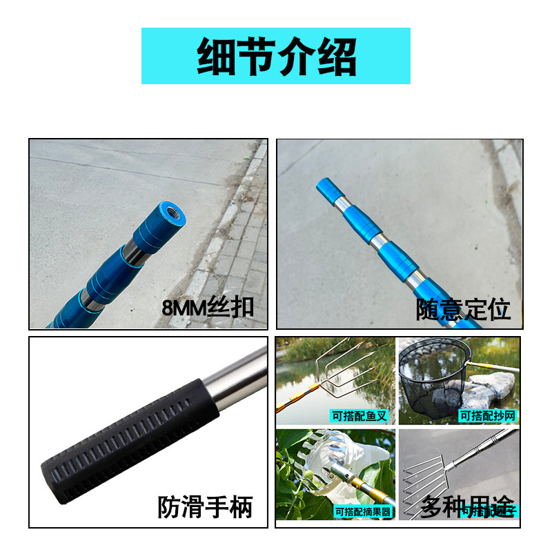 淘宝加厚不锈钢抄网杆裸竿超硬钓鱼抄鱼捞鱼网抄可伸缩抄网杆鱼叉杆