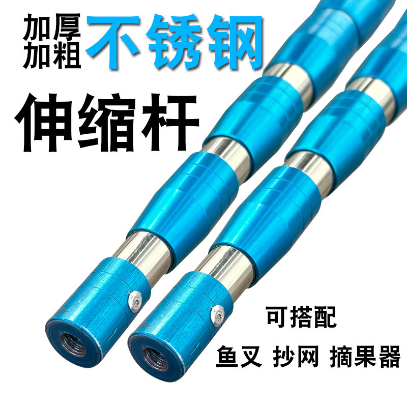 淘加厚不锈钢抄网杆裸竿超硬钓鱼抄鱼捞鱼网抄可伸缩抄网竿鱼叉杆