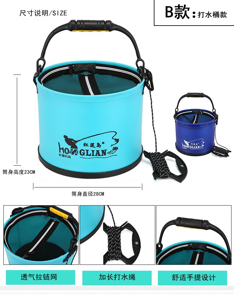 迪乐尼EVA鱼桶活鱼箱钓鱼桶装鱼桶打水桶养鱼桶钓鱼桶渔具
