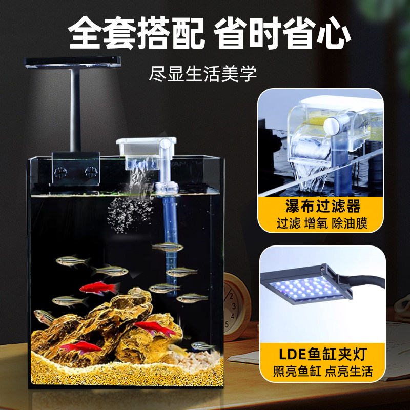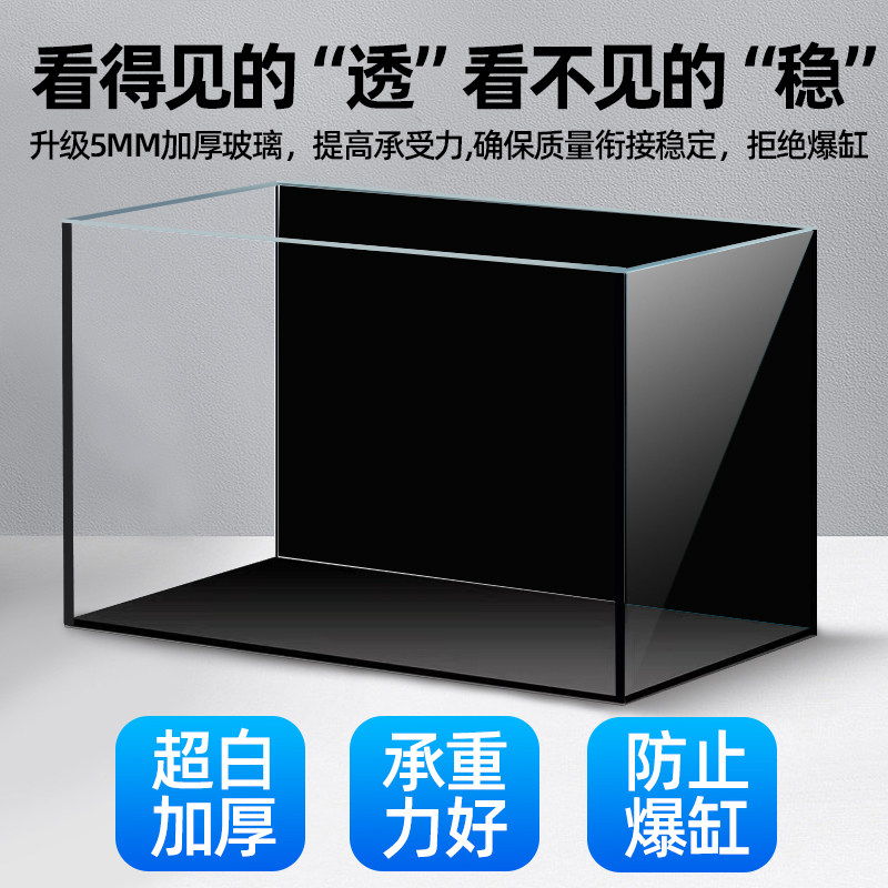 天猫鱼缸超白玻璃金晶五线小型新款客厅黑背缸生态桌面斗鱼迷你水族箱