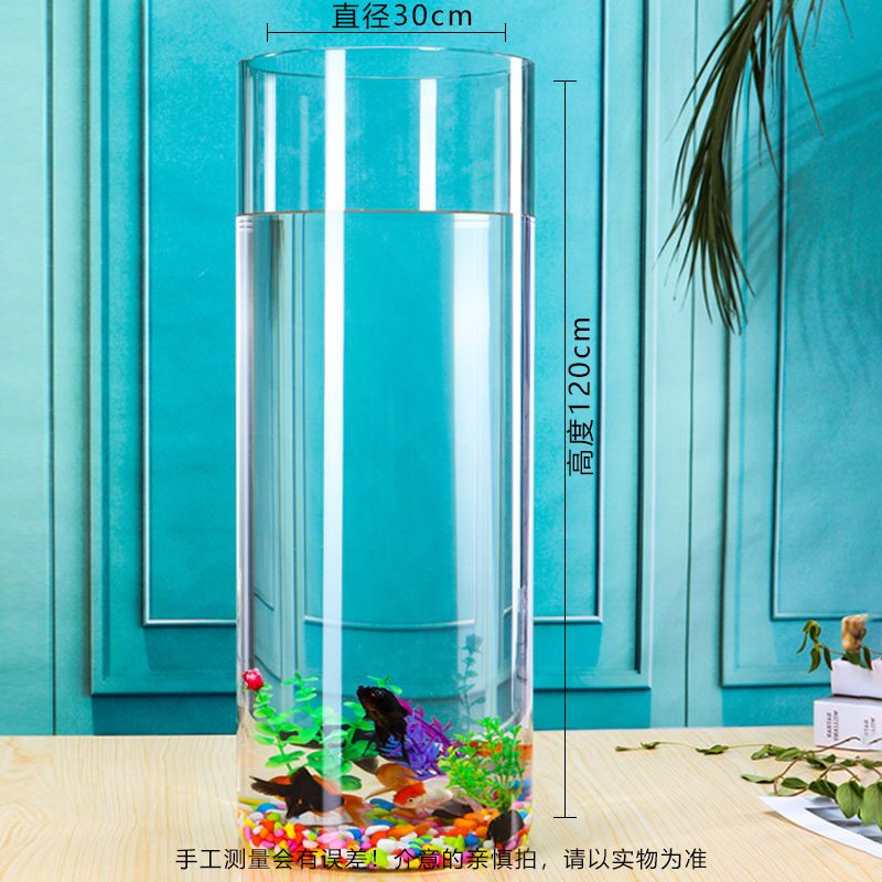 淘宝圆形鱼缸客厅小型桌面玻璃金鱼缸圆柱形养鱼缸落地立体透明水族箱