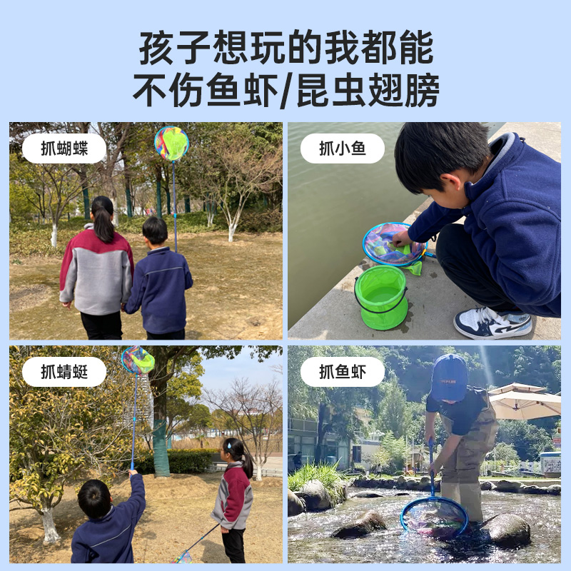 天猫儿童捞鱼网抄渔网兜可伸缩杆捕蝴蝶蜻蜓虫抓小鱼孩子户外玩具工具