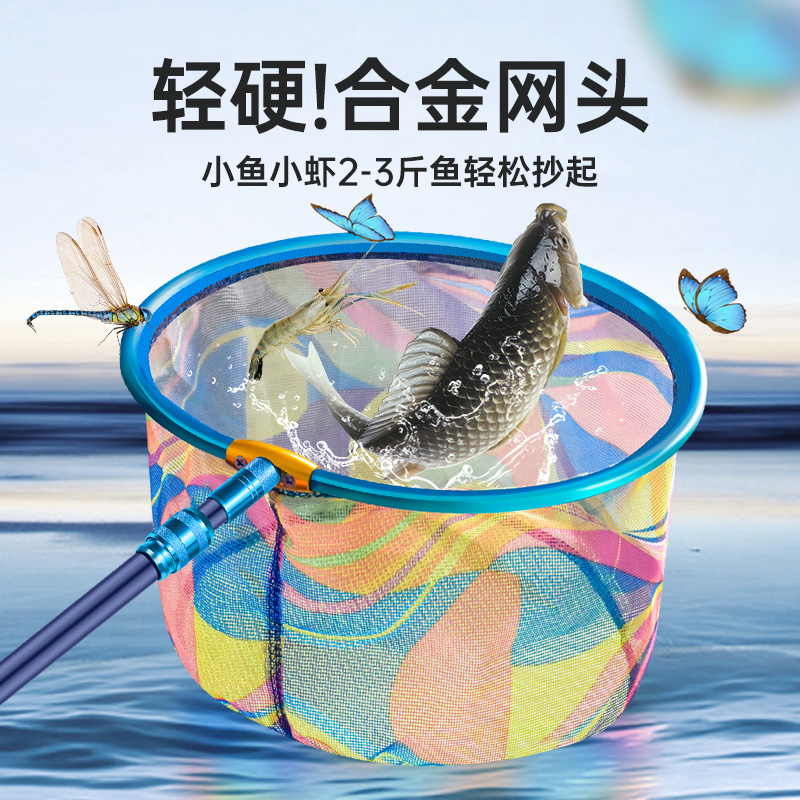伸缩儿童抄网捞鱼网捕蜻蜓蝴蝶捞鱼网捞小鱼网兜碳素竿渔网杆套装