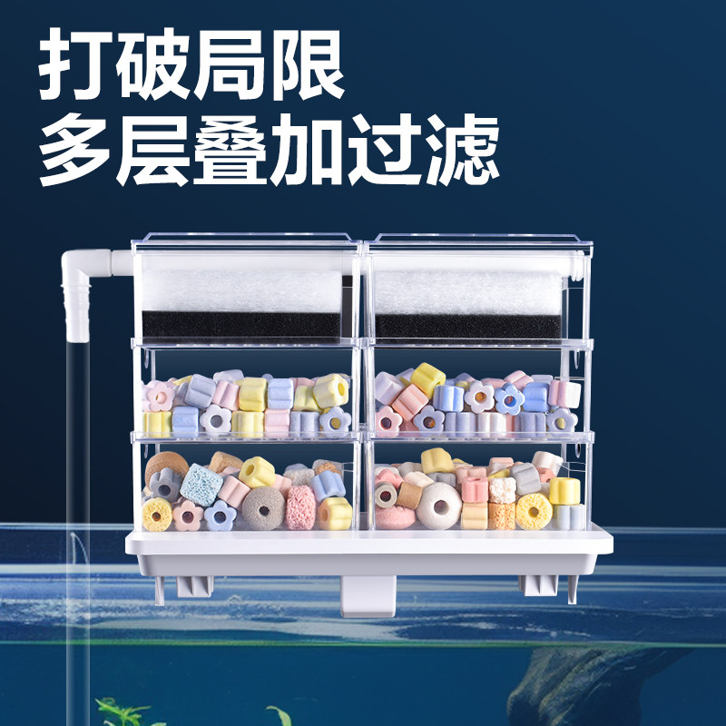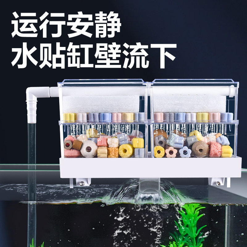 YEE小鱼缸过滤器循环水泵外置瀑布净水壁挂滴流盒过滤制氧一体机