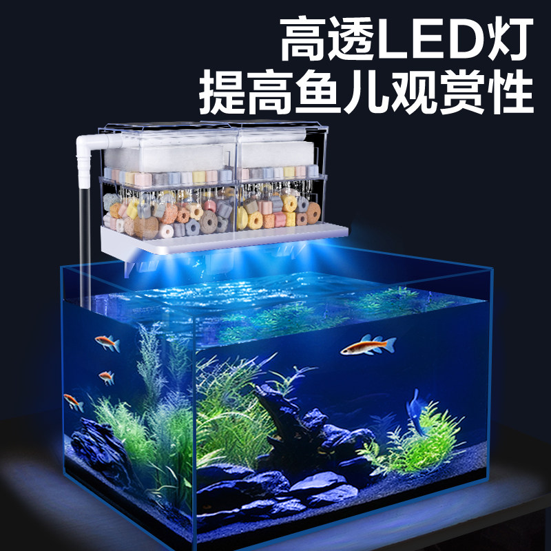 淘宝小鱼缸过滤器带灯滴流盒过滤盒三合一循环水泵外置净水壁挂制氧