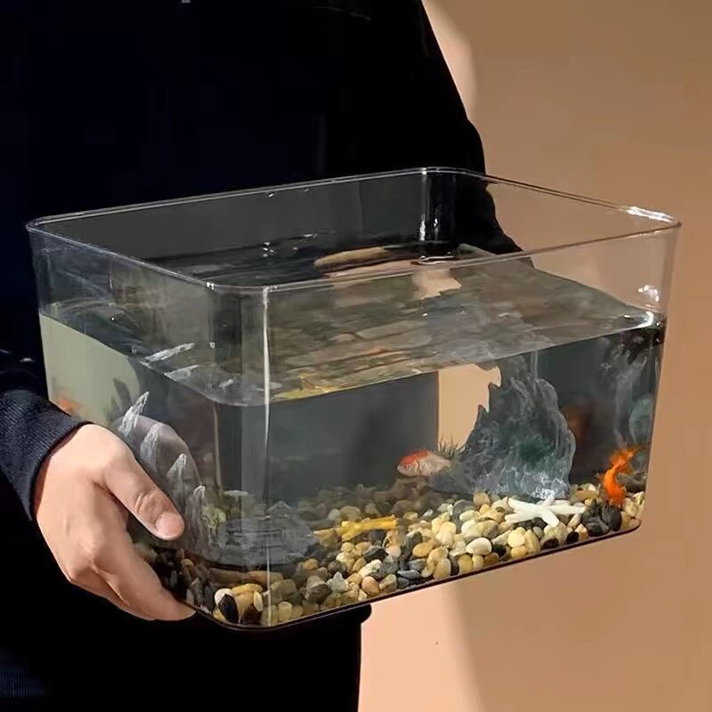 桌面缸鱼缸斗鱼虾水族箱乌龟缸生态绿植花盆透明亚克力窄高长方形
