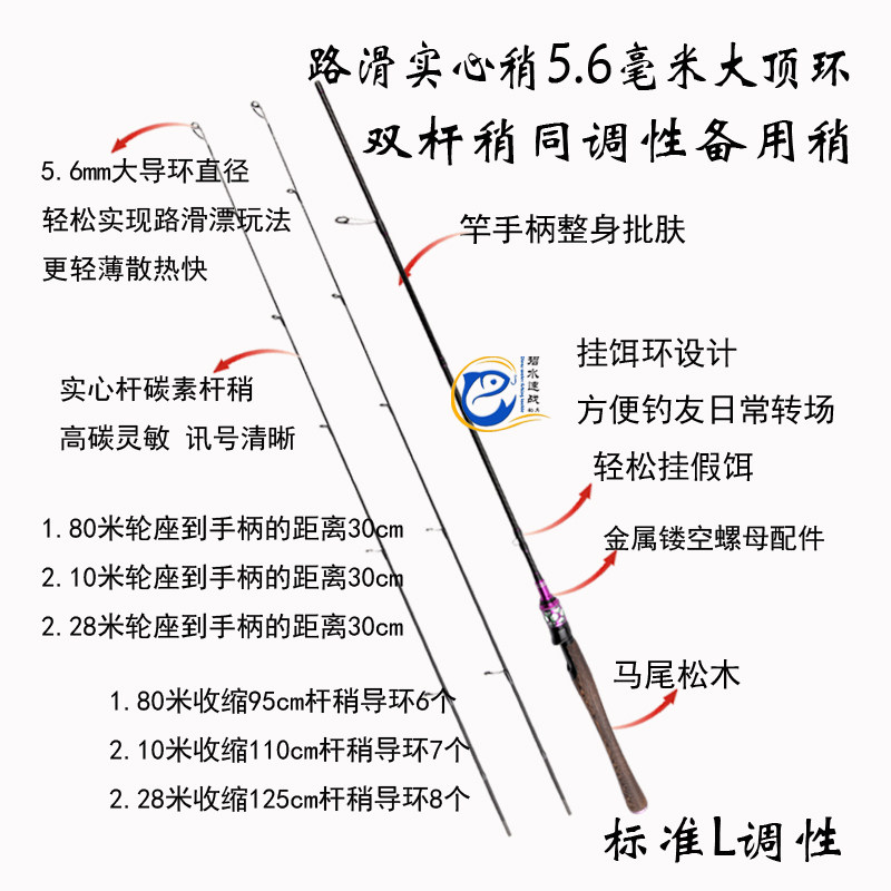 淘宝新品交叉碳素L调路滑竿大导环可过太空豆马口杆实心路亚竿钓鱼竿