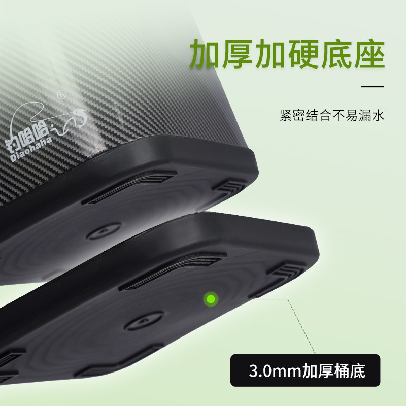 2026新款便携打水桶采用高强度碳纹材质,轻便耐用,兼具防滑与抗冲击性能。专为黑坑、路亚等户外垂钓场景设计,桶身结构稳固,密封性好,可有效防止漏水。配备人性化手提把手,携带便捷,支持手提或肩背。除盛放鱼获外,还可作为打水桶、储物桶或临时座椅,真正实现一桶多用。底部加强设计,适应复杂地形,防滑耐磨。简约黑配色搭配时尚碳纹外观,彰显专业钓者品味。无论是野钓、竞技还是休闲作钓,这款多功能钓鱼桶都是您不可或缺的户外好帮手。