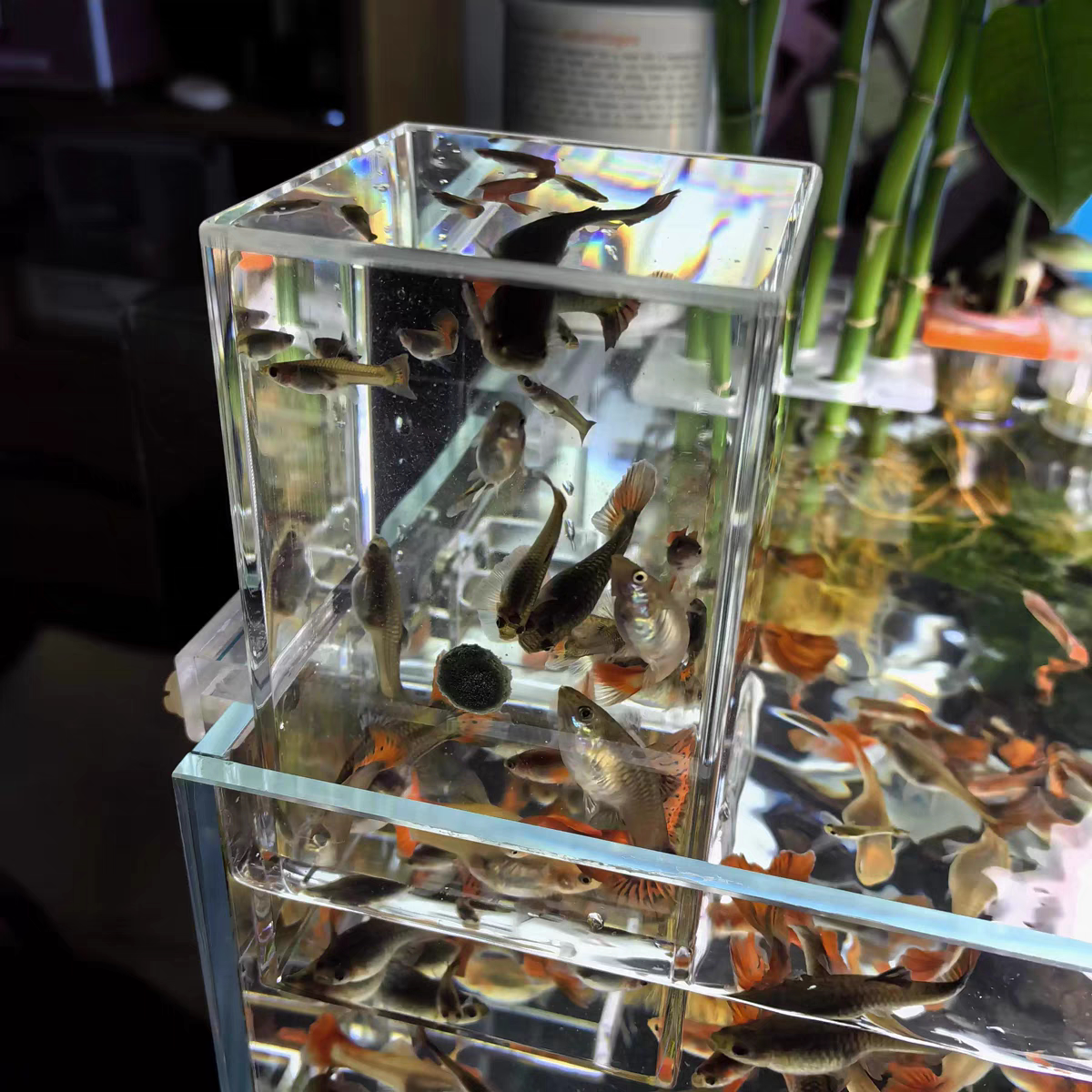 淘宝亚克力负压鱼缸造景生态缸小型桌面斗鱼孔雀缸家用客厅小水族箱