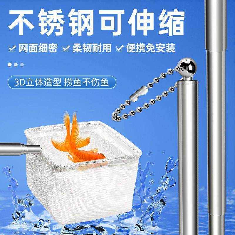 淘厂家直销不锈钢可伸缩鱼捞水族网捞加厚鱼缸金鱼观赏鱼方形捞鱼网