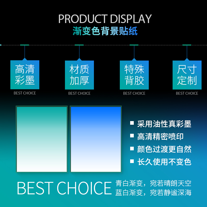 淘宝鱼缸水族箱渐变背景贴纸青白蓝白渐变高清不掉色自粘造景背景画