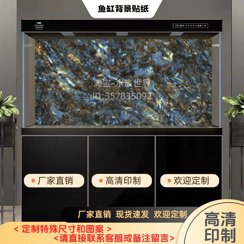 淘宝鱼缸背景贴纸画仿大理石纹水鸦粉冰丝粉高清水族箱鱼缸造景正面胶
