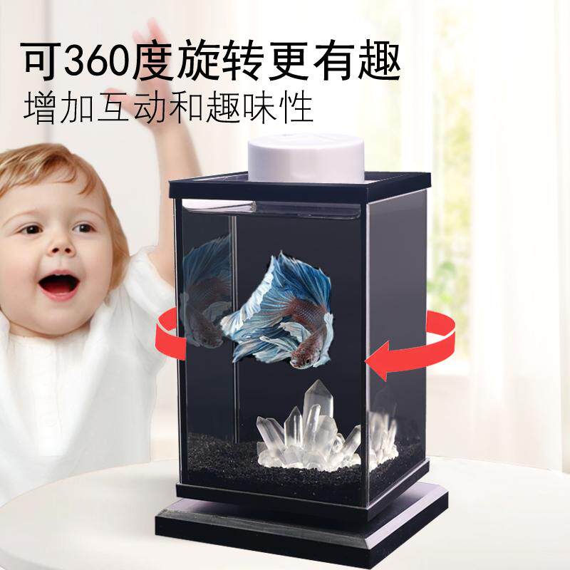 淘宝创意旋转系列超白玻璃桌面小型水族箱创意迷你微景观鱼缸泰斗缸