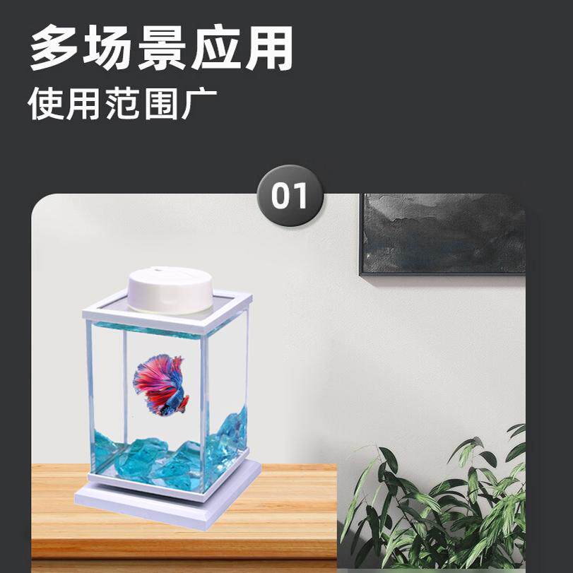 创意旋转系列超白玻璃桌面小型水族箱,集美学与实用于一体,专为现代家居与办公空间打造。采用高透光超白玻璃,清晰展现水中景致,搭配360°旋转设计,多角度观赏更添趣味。缸体小巧精致,适合摆放桌面、书架或茶几,轻松融入各种环境。内置迷你过滤系统,保持水质清澈,维护简便。可搭配水草、沉木、砂石等打造个性微景观,亦可饲养泰斗鱼等小型观赏鱼,营造静谧灵动的生态空间。既是绿植水族爱好者的理想选择,也是提升生活品质的创意装饰,让自然之美触手可及。