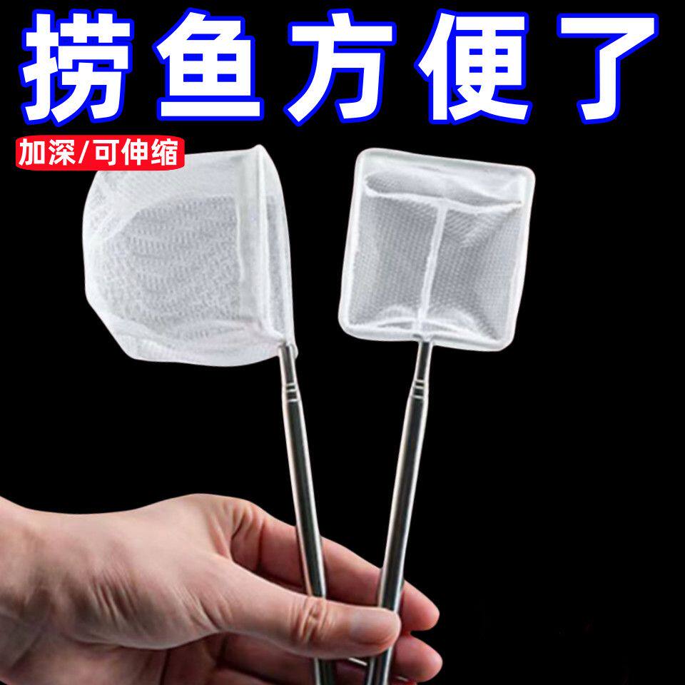淘厂家直销不锈钢可伸缩鱼捞水族网捞加厚鱼缸金鱼观赏鱼方形捞鱼网
