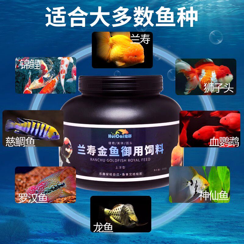 淘宝绘彩金鱼饲料兰寿鱼食小颗粒血鹦鹉狮子头锦鲤泰狮起头增艳专用粮