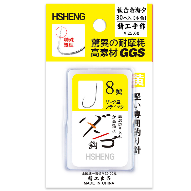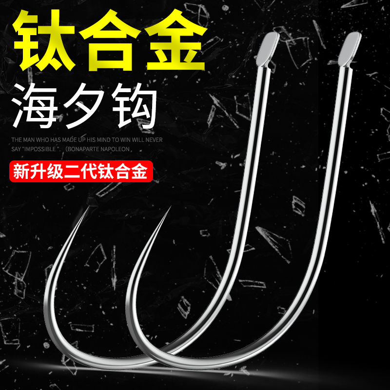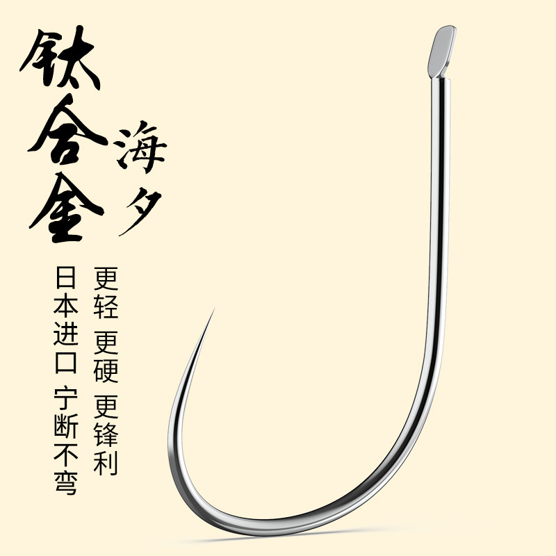天猫正品钛合金海夕鱼钩散装细条进口日本无倒刺钓鱼钩黑坑渔勾金海夕