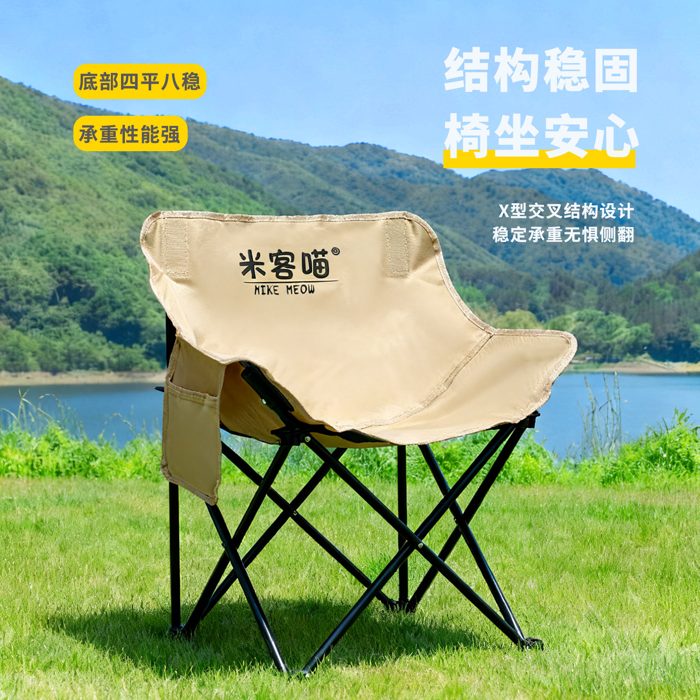 天猫米客喵月亮椅户外折叠椅靠背钓鱼椅聚会野餐懒人椅便携旅游露营椅