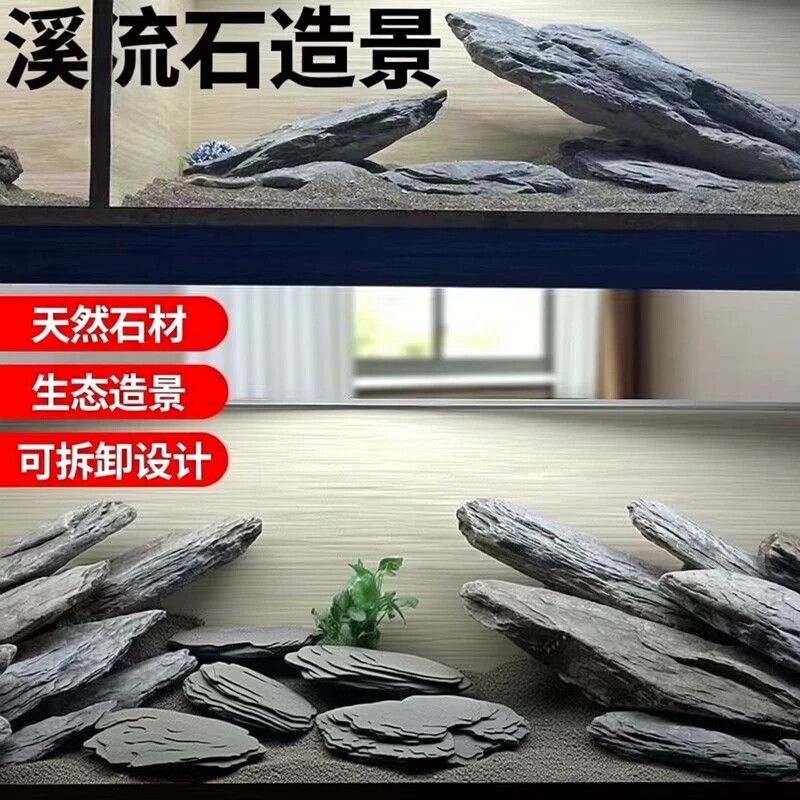 淘宝原生态溪流片岩DIY造景水陆缸鱼虾龟晒台石头摆件鱼缸造景石套餐