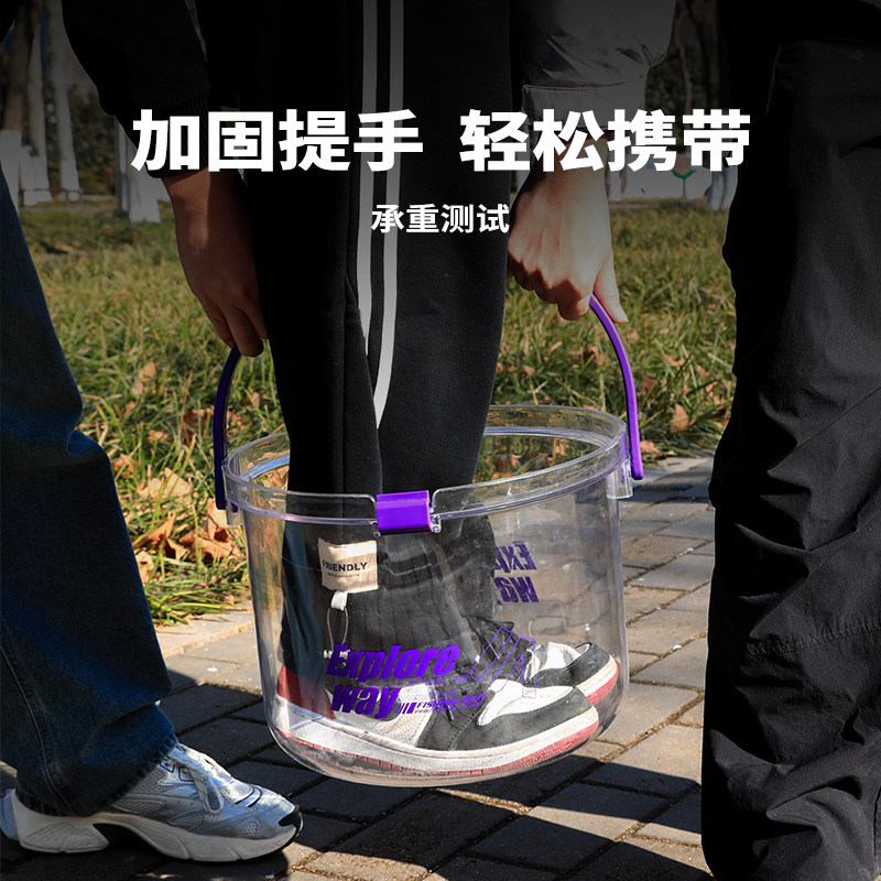 打水桶提绳钓鱼井用取水加厚透明可折叠活鱼桶便携海钓饵鱼小鱼桶