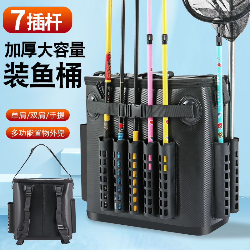 淘宝加厚款EVA钓鱼背包双肩单肩包鱼竿包活鱼桶鱼护包插多杆桶钓鱼桶