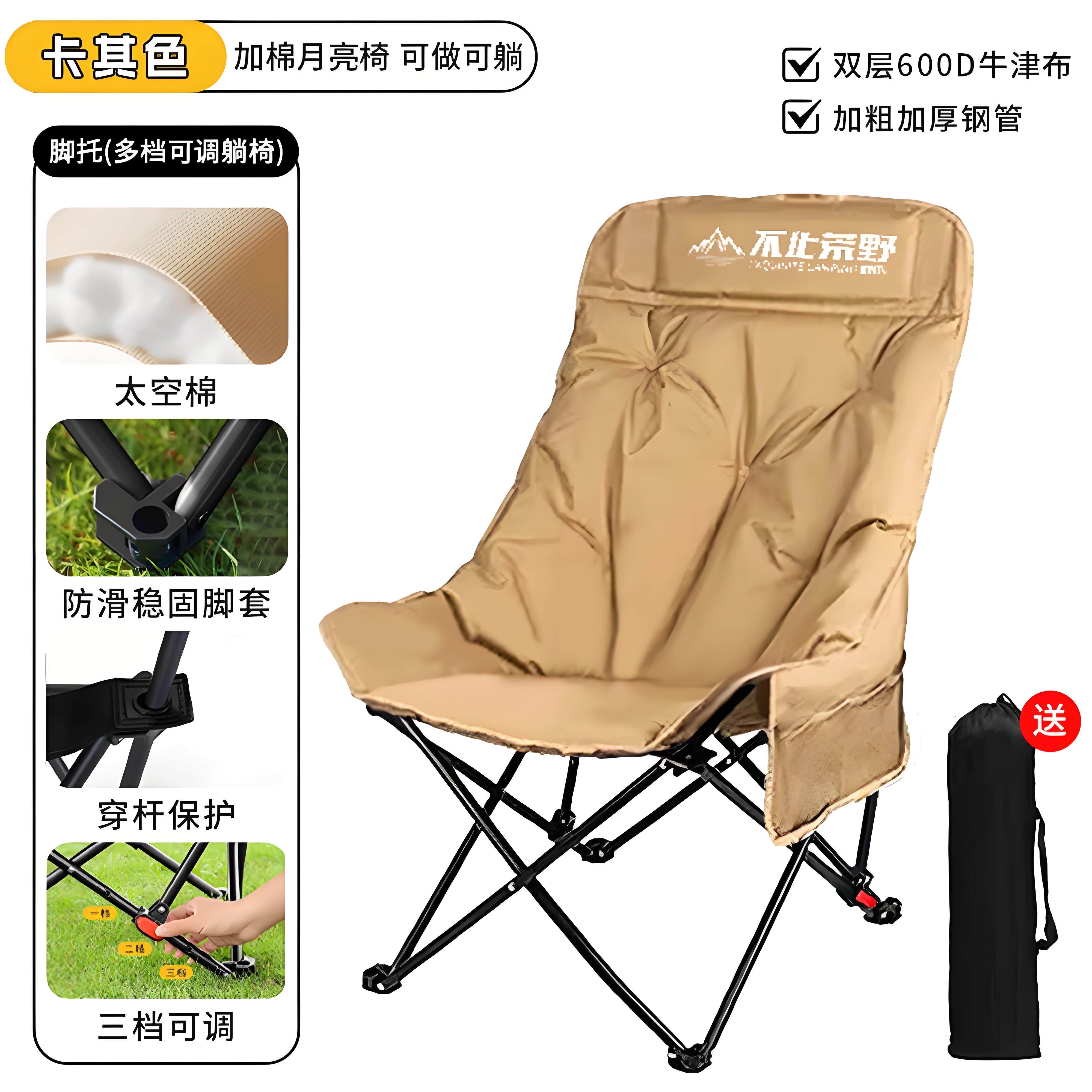天挪客户外折叠椅轻便露营月亮椅便携沙滩躺椅钓鱼椅凳子靠背椅子