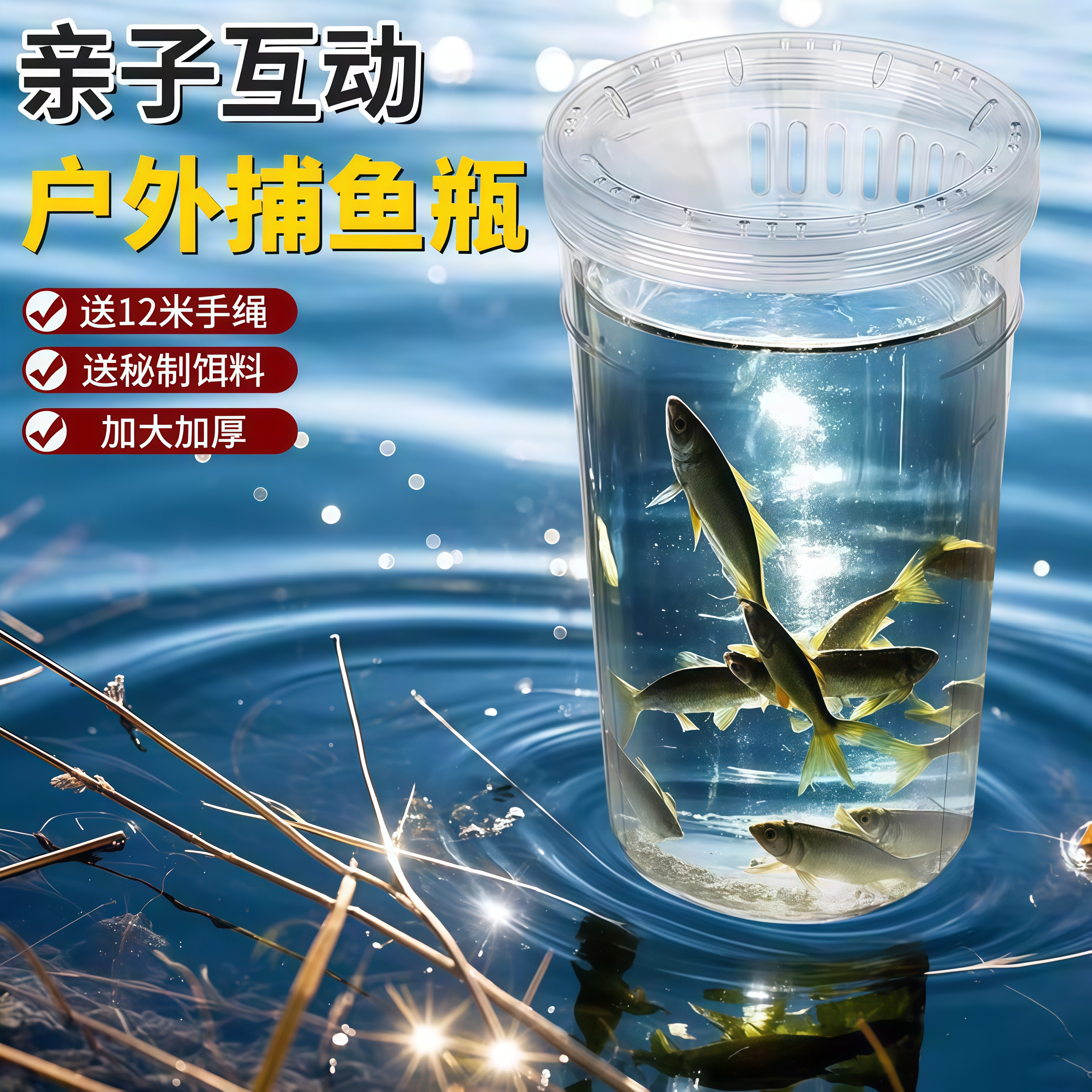 天亲子捕鱼瓶儿童户外捞鱼神器安全戏水玩具套装家庭互动捉小鱼装备