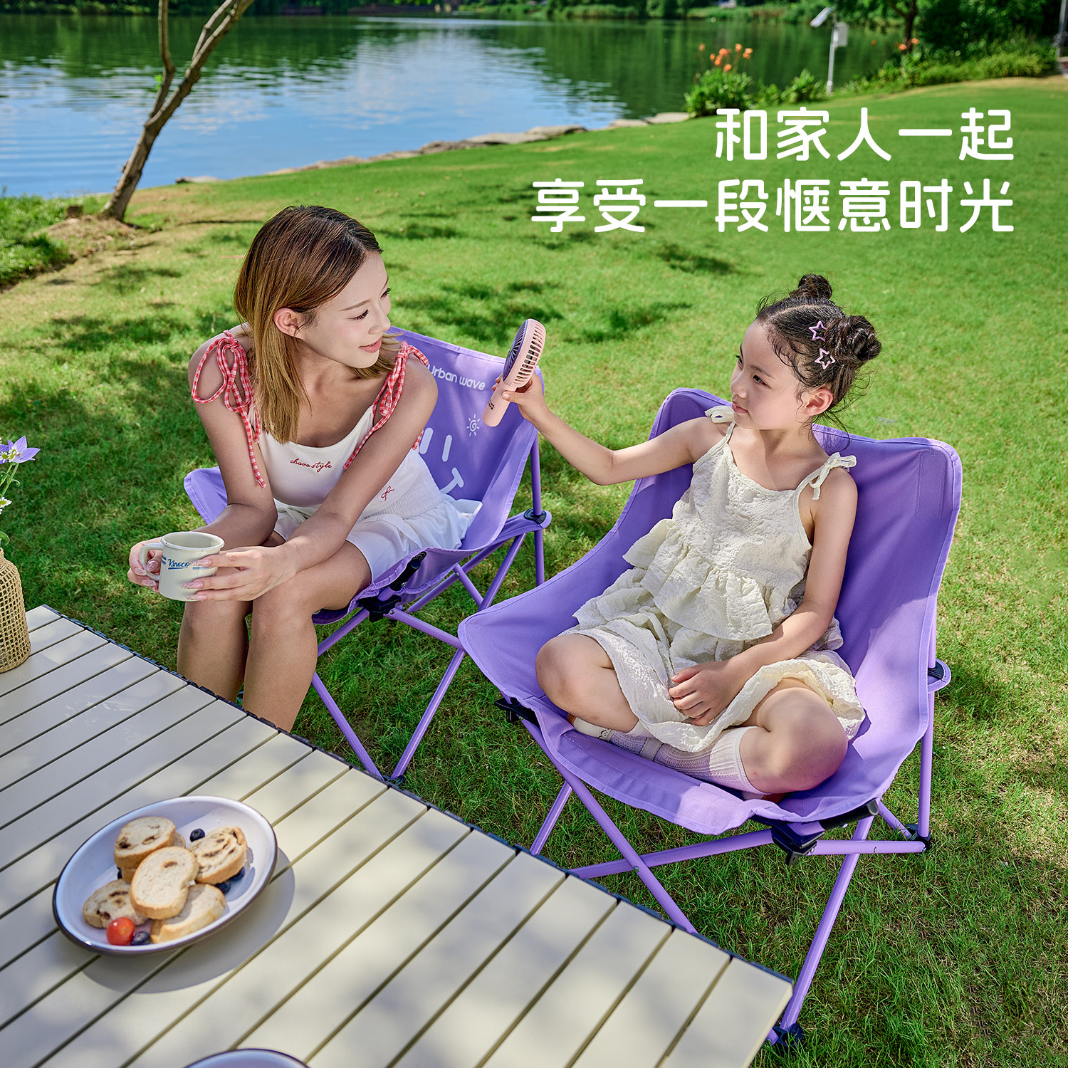 天猫月亮椅户外折叠椅便携式露营椅子钓鱼凳沙滩躺椅野餐桌椅休闲套装