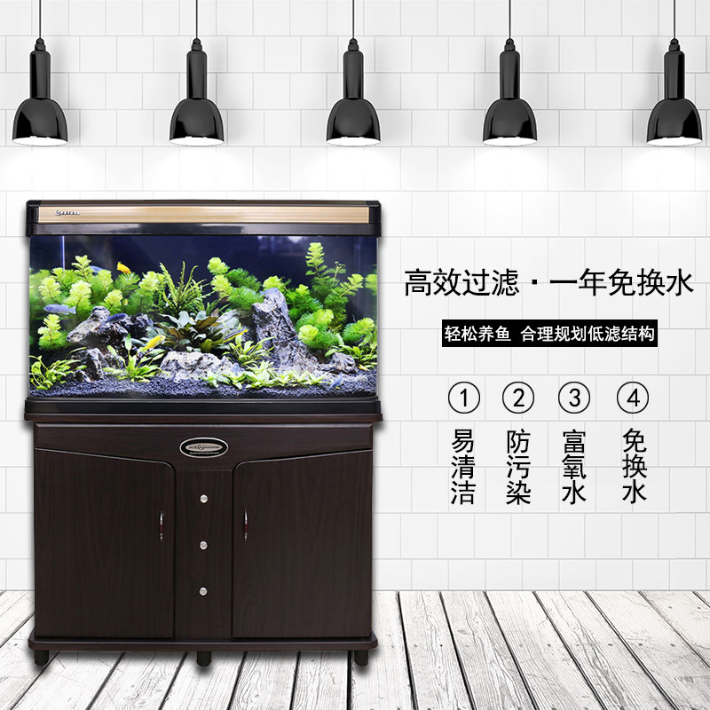 淘宝闽江鱼缸客厅长方形家用玻璃生态水族箱免换水热弯小型鱼缸带底柜