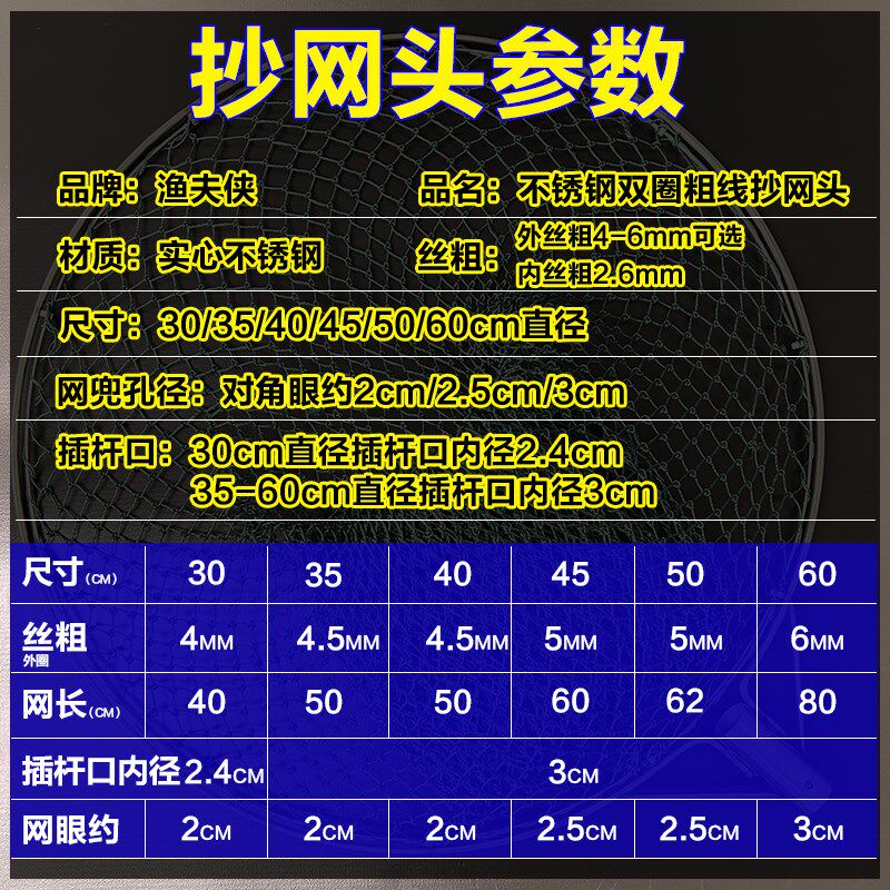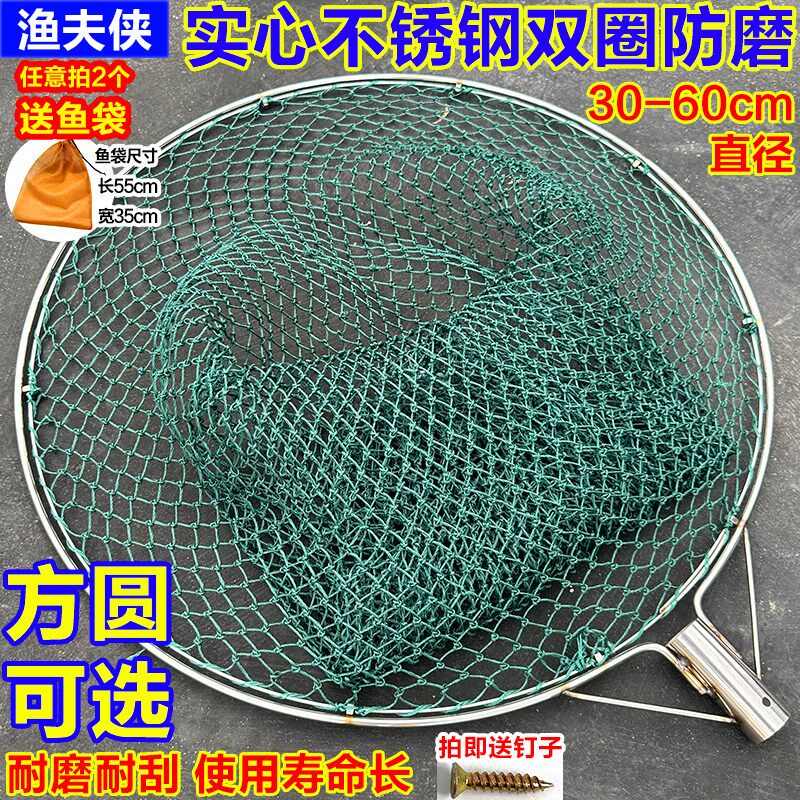 淘宝实心双圈防磨不锈钢抄网头加粗手工网兜捞鱼网大物专属抄鱼捞鸭网