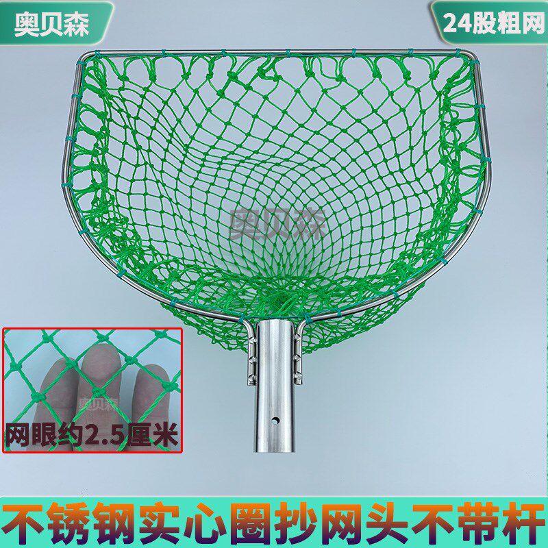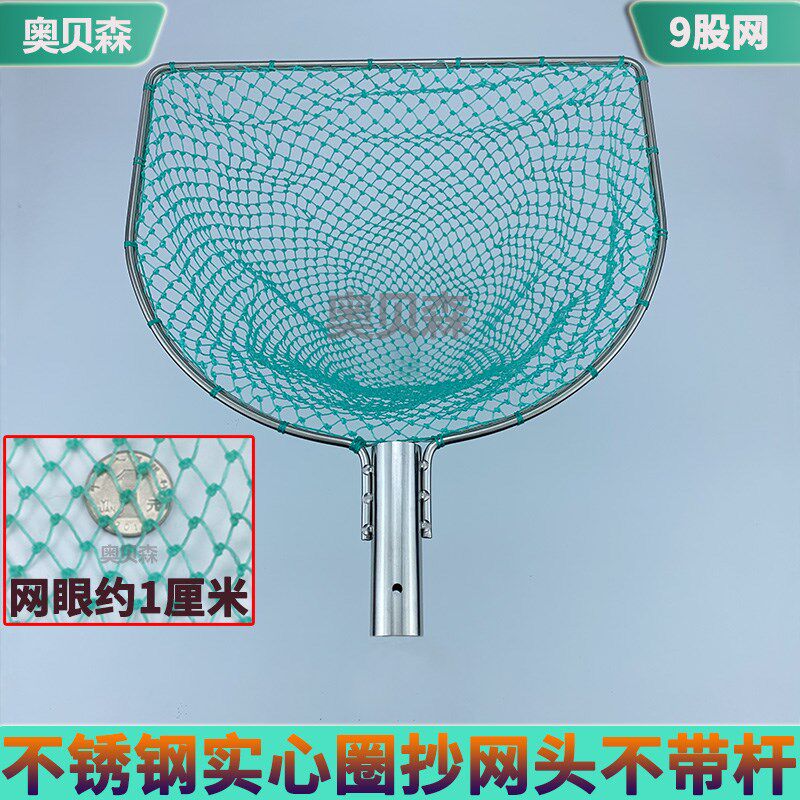 淘宝304不锈钢平头抄网头捞鱼尼龙网兜鱼池海鲜水产鱼捞网卖鱼抓大鱼