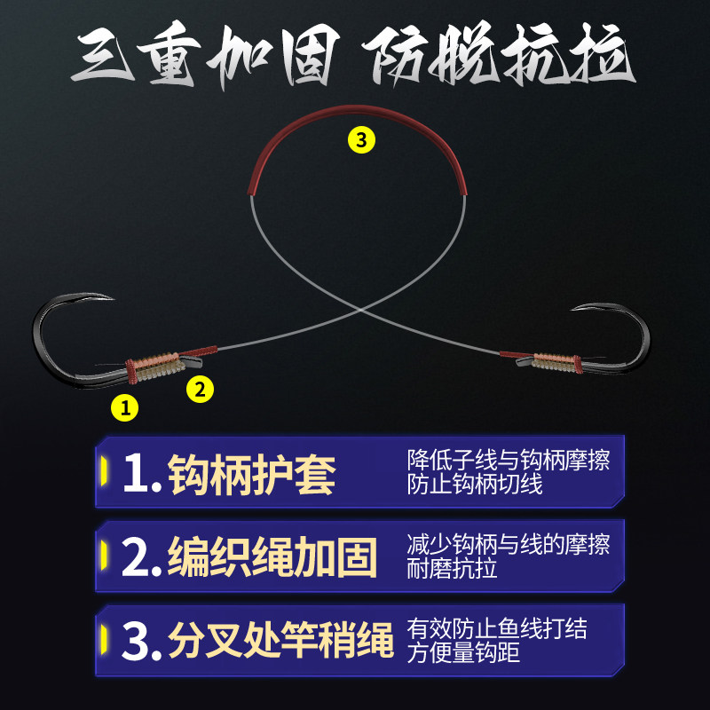 淘防缠绕串钩钓组金袖三钩串钩线组鲫鱼黄辣丁抛竿筏竿钓鱼钩套装