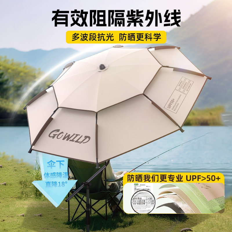 渔之源2025新款钓鱼伞,专为户外垂钓与露营爱好者精心设计。采用高强度防紫外线涂层伞面,有效阻隔99%紫外线,防晒防雨双重防护。伞骨选用轻质航空铝合金材质,抗风稳固,经久耐用。双层透气设计,有效降低伞内温度,提升使用舒适度。伞面直径达2.4米,覆盖面积大,可容纳多人及钓具。配备可调节支撑杆与地钉固定系统,适应多种地形。折叠后小巧便携,附赠收纳袋,轻松携带。无论是烈日暴晒还是突降阵雨,渔之源钓鱼伞都能为您提供可靠的户外庇护,是垂钓、露营的理想伴侣。