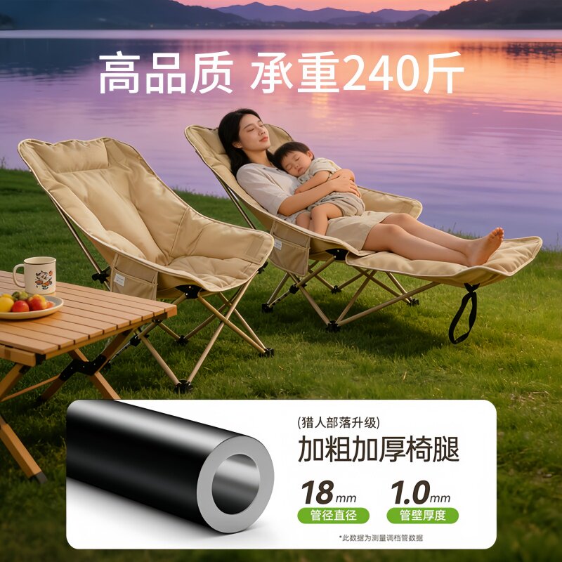 户外折叠椅月亮椅露营椅子便携板凳钓鱼马扎沙滩躺椅野餐桌椅装备