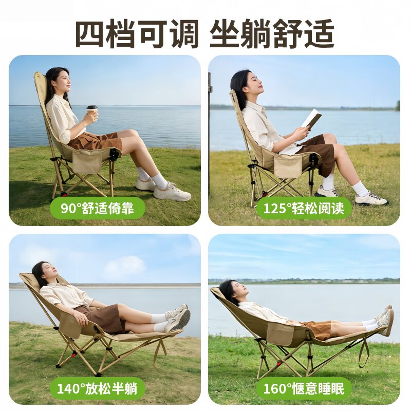 户外折叠椅加高月亮椅可调节露营椅子便携式躺椅沙滩钓鱼野餐椅凳